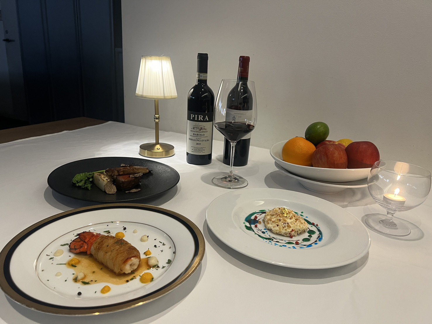| 前菜 | 本マグロのカルパッチョ 柑橘のソース キャビアを添えて |