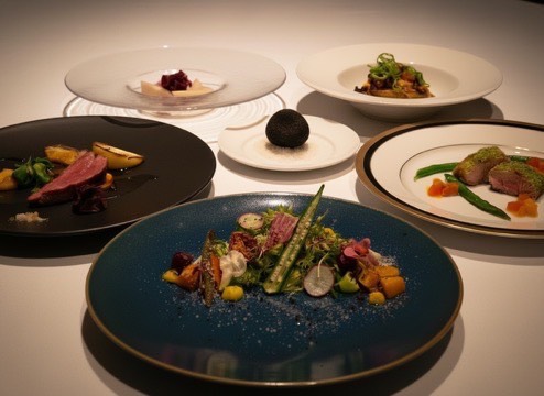 | 前菜 | ・18種類の彩り野菜と3種類の鮮魚盛り合わせ エルダフラワーパウダーとカラスミを添えて |